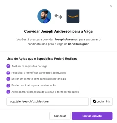 Envie convites personalizados para que profissionais se candidatem a vagas abertas.